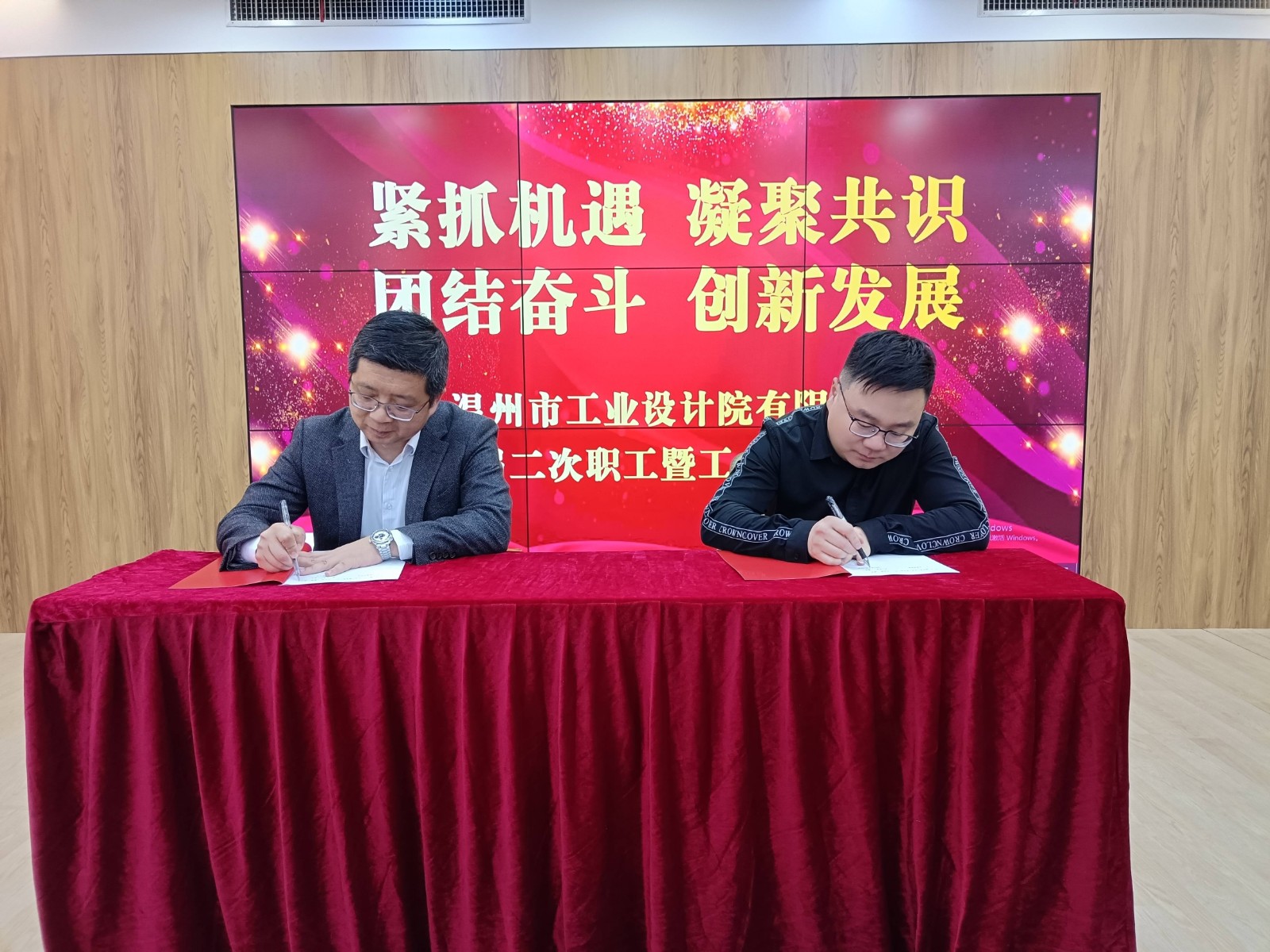 大會審議通過了上述報告,并表決通過了《產值分配規(guī)定》、《生產部門切塊分配管理辦法》、《薪酬制度》、《人力資源管理辦法》等新修訂的制度。會議最后由總經理吳家強代表公司與各部門負責人簽訂了2023年度目標責任書。